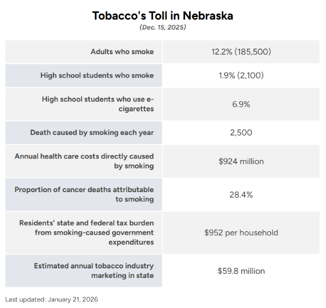 This resource highlights the impact tobacco has on both adults and youth in Nebraska.